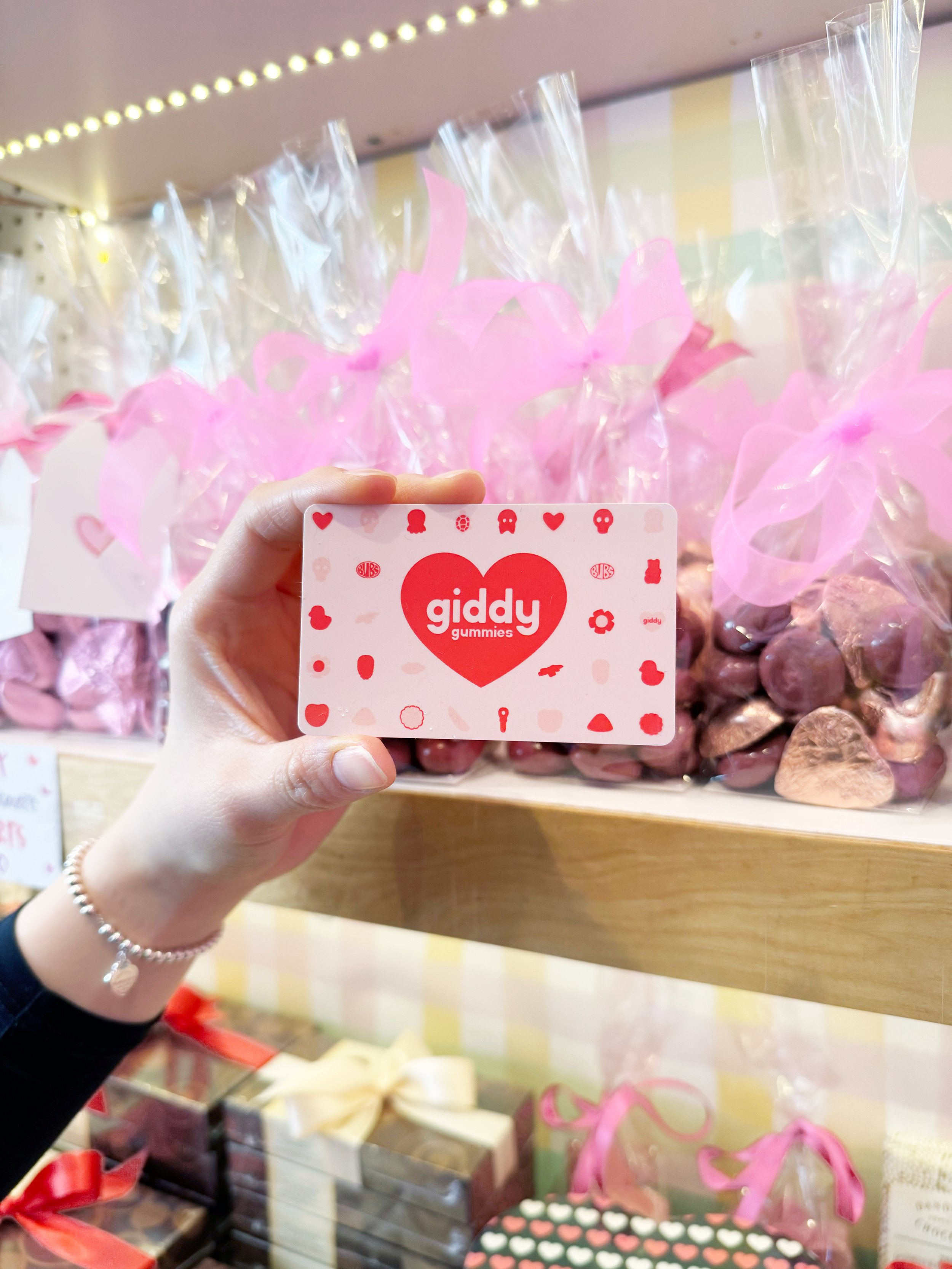 The Giddy Gummies logo is built from the soft, rounded shapes found throughout the shop’s signature sweets. Inspired especially by the heart-shaped gummies, the mark blends playfulness with a sense of warmth and affection.
