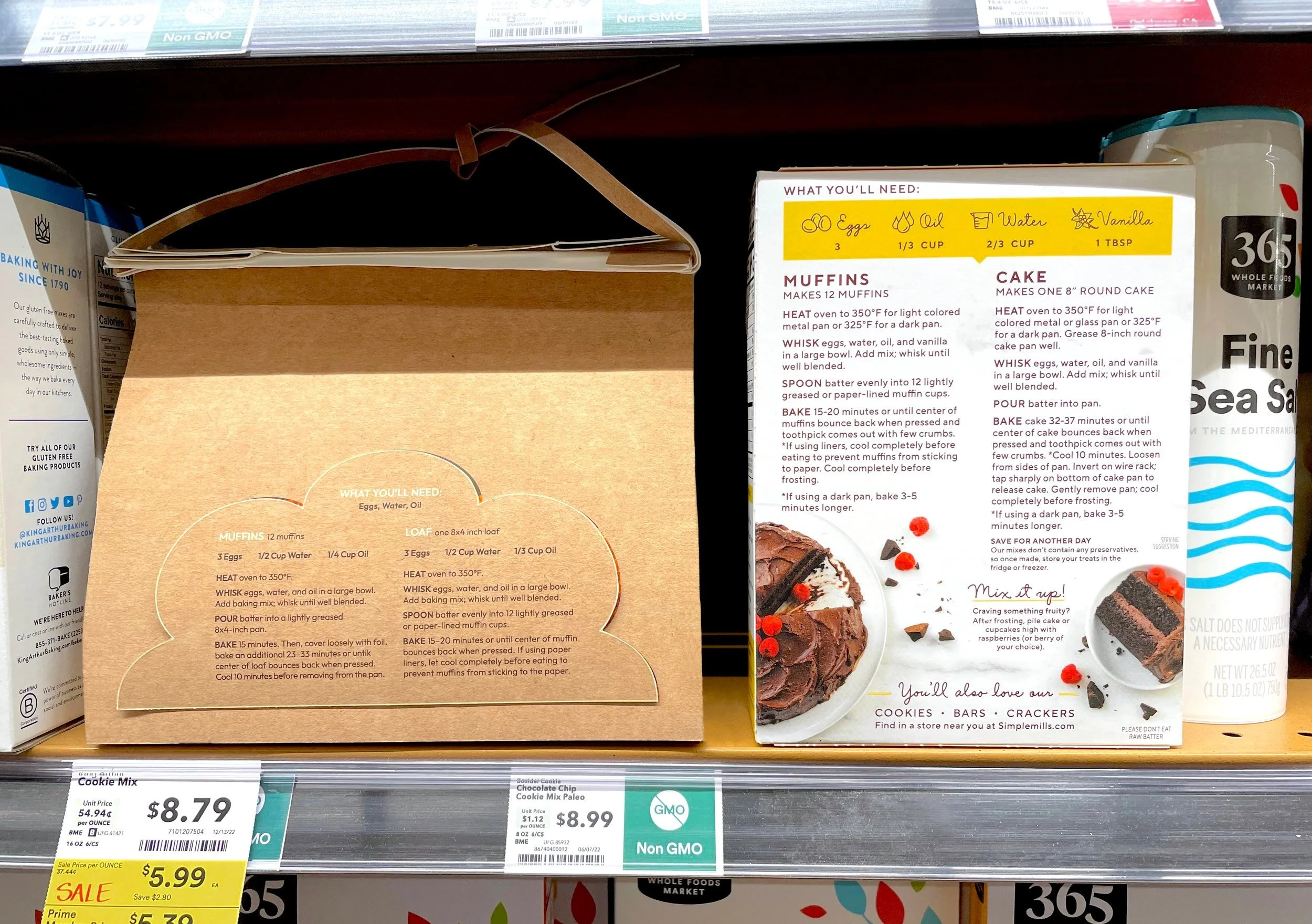 From research, I found the mission of Simple Mills is to “advance the health of people and the planet.” To further advance the health of the planet, finding a way to reuse the box and plastic bag of the mix could emphasize their mission to the intended audience. The box can be repurposed to hold the fully baked banana bread and the container of the mix is parchment paper that could be used to bake the mix. To create a fully compostable container, the container closes by folding the top and rolling it down to close. The recipe printed on the back is detachable for people to read while baking and remove for when they take their bread to other places.